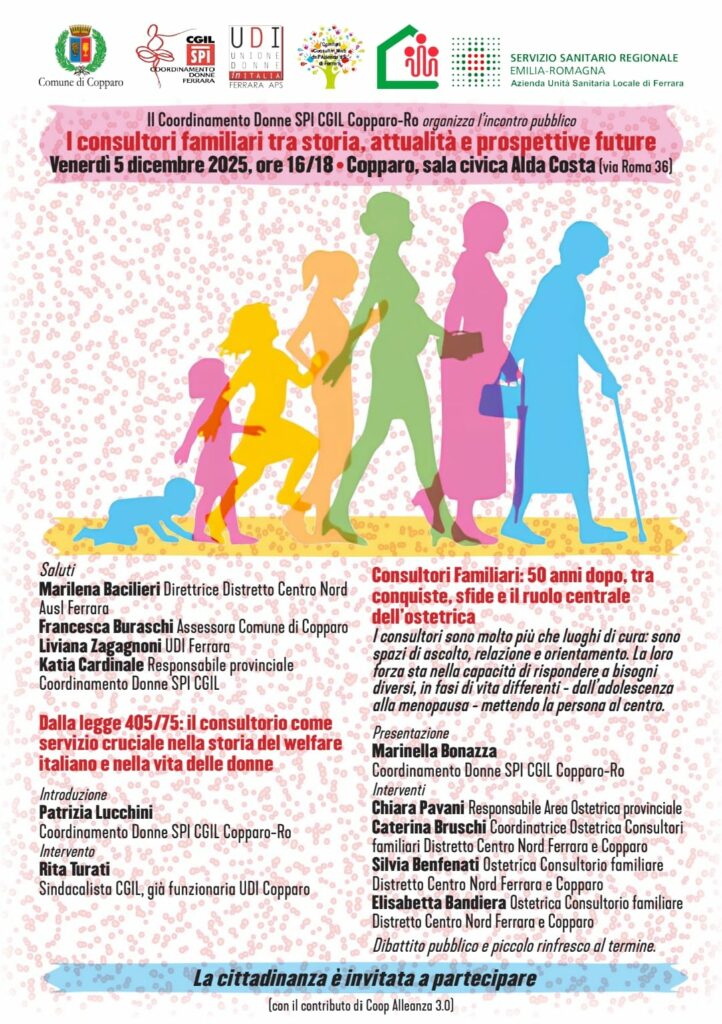 Il 5 dicembre incontro pubblico:” I consultori familiari tra storia, attualità e prospettive future” ore 16, sala civica “Alda Costa” in via Roma 36, Copparo.