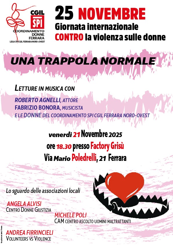 FERRARA il 21 novembre, alle ore 18,30, letture in musica:” Una trappola normale” presso Factory Grisù , via Mario Poledrelli,21.