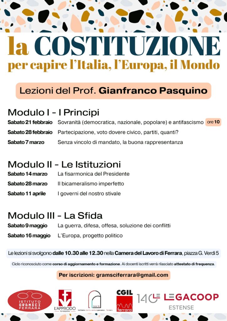 Istituto Gramsci di Ferrara e Fondazione L’approdo, in collaborazione con Istituto di Storia Contemporanea di Ferrara, CGIL Ferrara e Legacoop Estense organizzano un ciclo di lezioni del Prof. Gianfranco Pasquino.